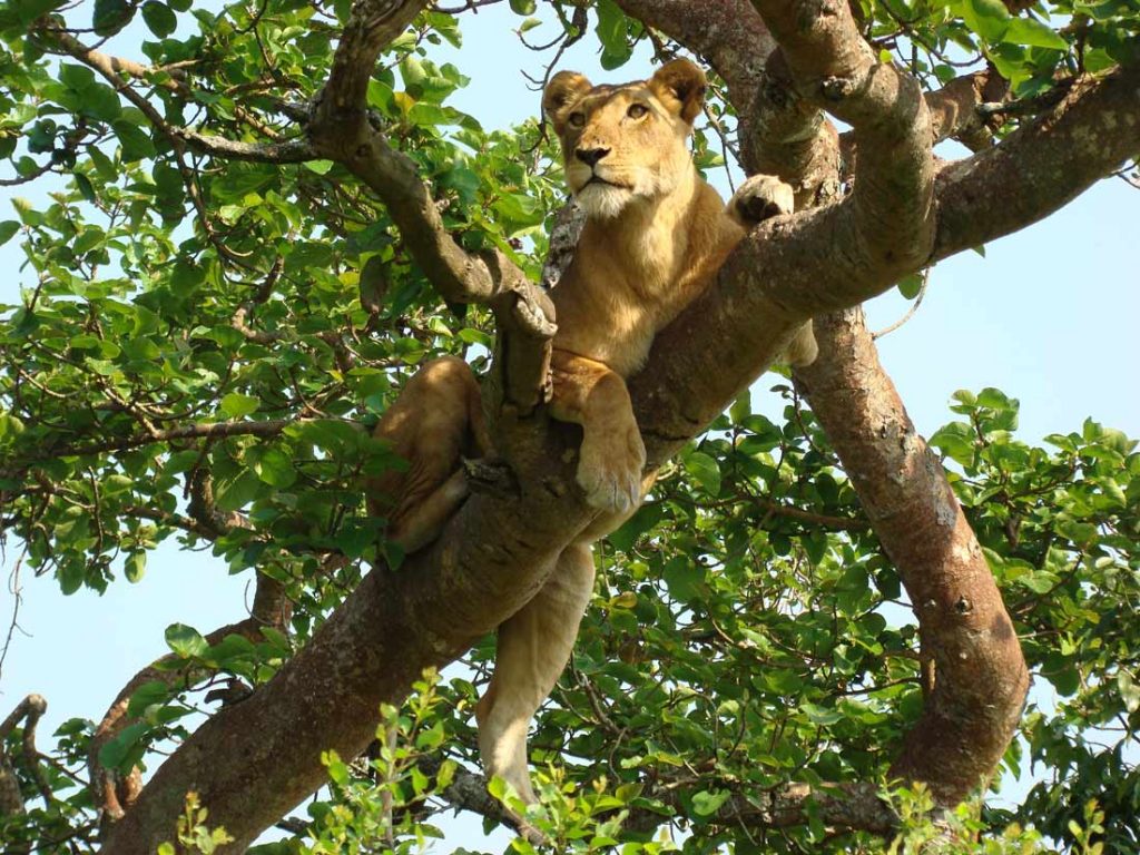 Queen Elizabeth Park has most of the tree climbing lions in Africa and the highest number of birds in Uganda. Most lions do not climb but there are about two populations of tree climbing lions in the whole world and one of these is found in Queen Elizabeth. The park also neighbors the magnificent snow-capped Rwenzori Mountains that are suited for all year-round hiking and mountaineering.